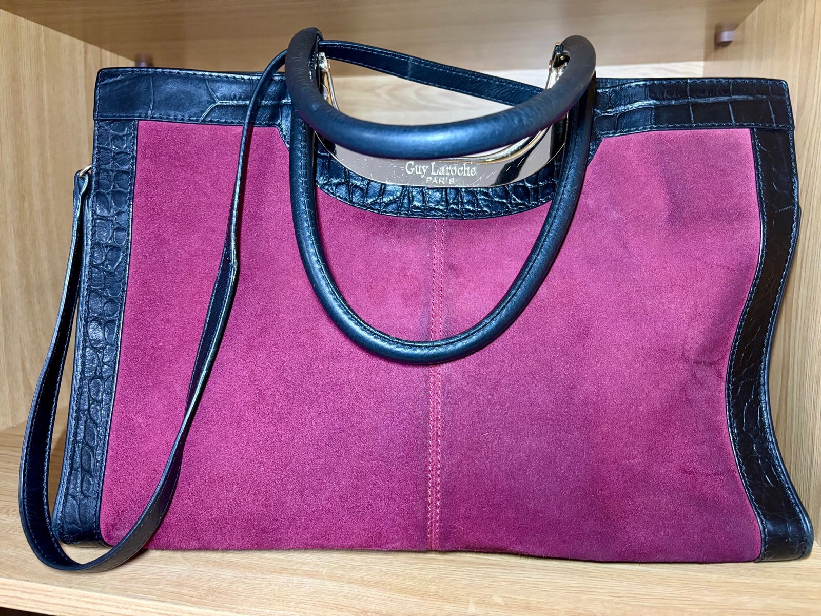 Bolso de alta calidad, Guy Laroche, una de esas firmas con identidad y esencia propia. Seleccionado por su autenticidad y conservación. El ante es suave, obtenido del lado interno de la piel, lo que le da una textura delicada y elegante. Es flexible, ligero y agradable al tacto. Su apariencia cálida y refinada, hace al ante un material muy apreciado en la confección de bolsos.