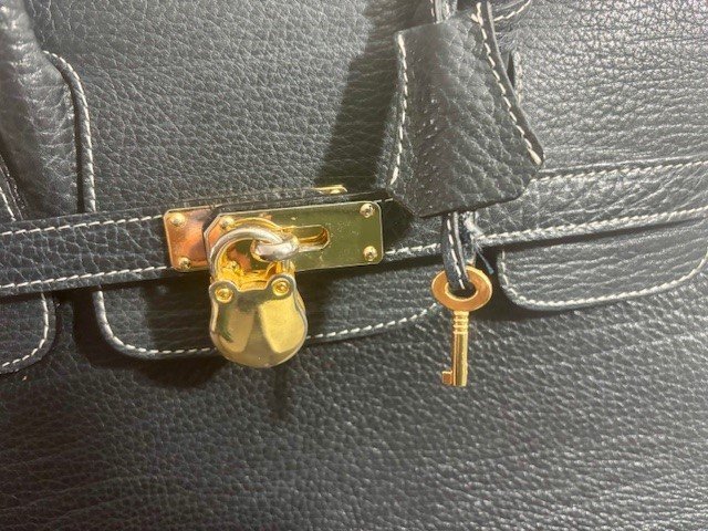 Cuero pulido, con su capa superior. Con llave y candado. Muy buen estado. Exclusivo El Corte Inglés, elaborado en España.